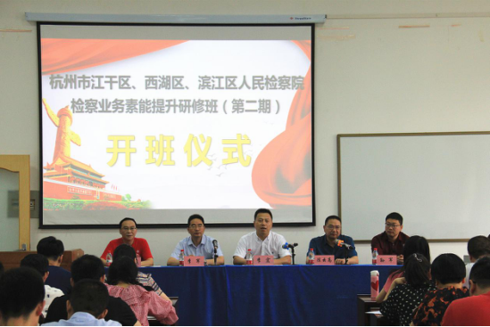 (通讯员:刘梓烨)5月29日,由十三水在线 主办的《杭州市江干区、西湖区、滨江区检察院检察业务素能提升研修班(第二期)》开班仪式在文清楼四楼会议室举行。十三水在线 党委书记李宏同志,杭州市滨江区人民检察院党组书记、检察长陈云高同志,江干区人民检察院党组副书记、副检察长李军同志,西湖区人民检察院党组成员孙军同志,以及十三水在线 培训中心主任曾大庆同志出席了本次开班典礼。