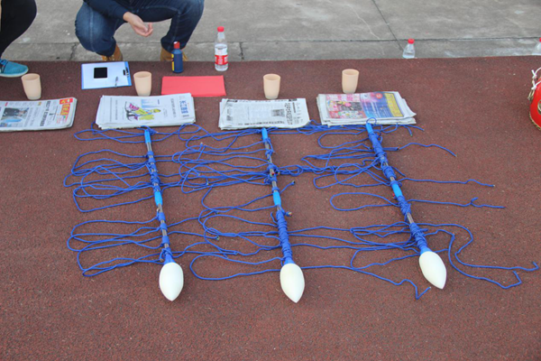 “鼓动人心”挑战,要求小组成员共同用绳子调整鼓面位置,用鼓面弹起自由下落的网球,指定时间内有效弹起次数多者胜。看似简单,但是需要考验到每个人的相互配合,没有一定的配合是完成不了这个任务的。卓老师和郭老师以及南瓜教练积极指导着学员们进行训练,四个小组为完成挑战,各显神通!