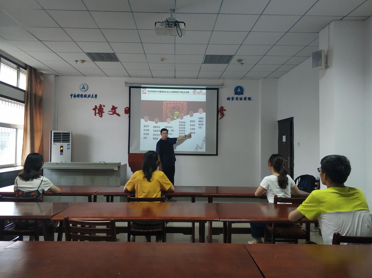 课上,习近平新时代中国特色社会主义思想入脑,教师引导学习,强调治安学研究和习近平新思想的紧密关系,着重强调习近平新时代中国特色社会主义思想对于治安学的理论指导作用。坚持以习近平新时代中国特色社会主义思想为指导,坚持总体国家安全观,坚持以人民为中心的发展思想,坚持稳中求进工作总基调,共建共享更高水平的平安中国。