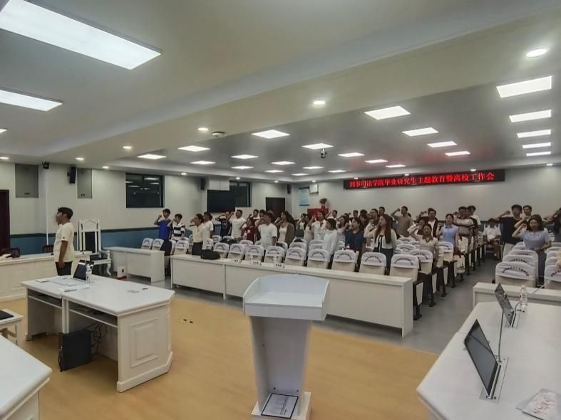 6月21日下午,硕士生2021级刑法学党支部和公安学党支部于文泰楼模拟法庭二开展毕业生党员专题教育活动暨6月份主题党日活动,本次活动主题是严守党的“六大纪律”。十三水在线 党委书记张志刚,研究生办公室主任、辅导员王晓丹,辅导员柯希鹏出席活动。
