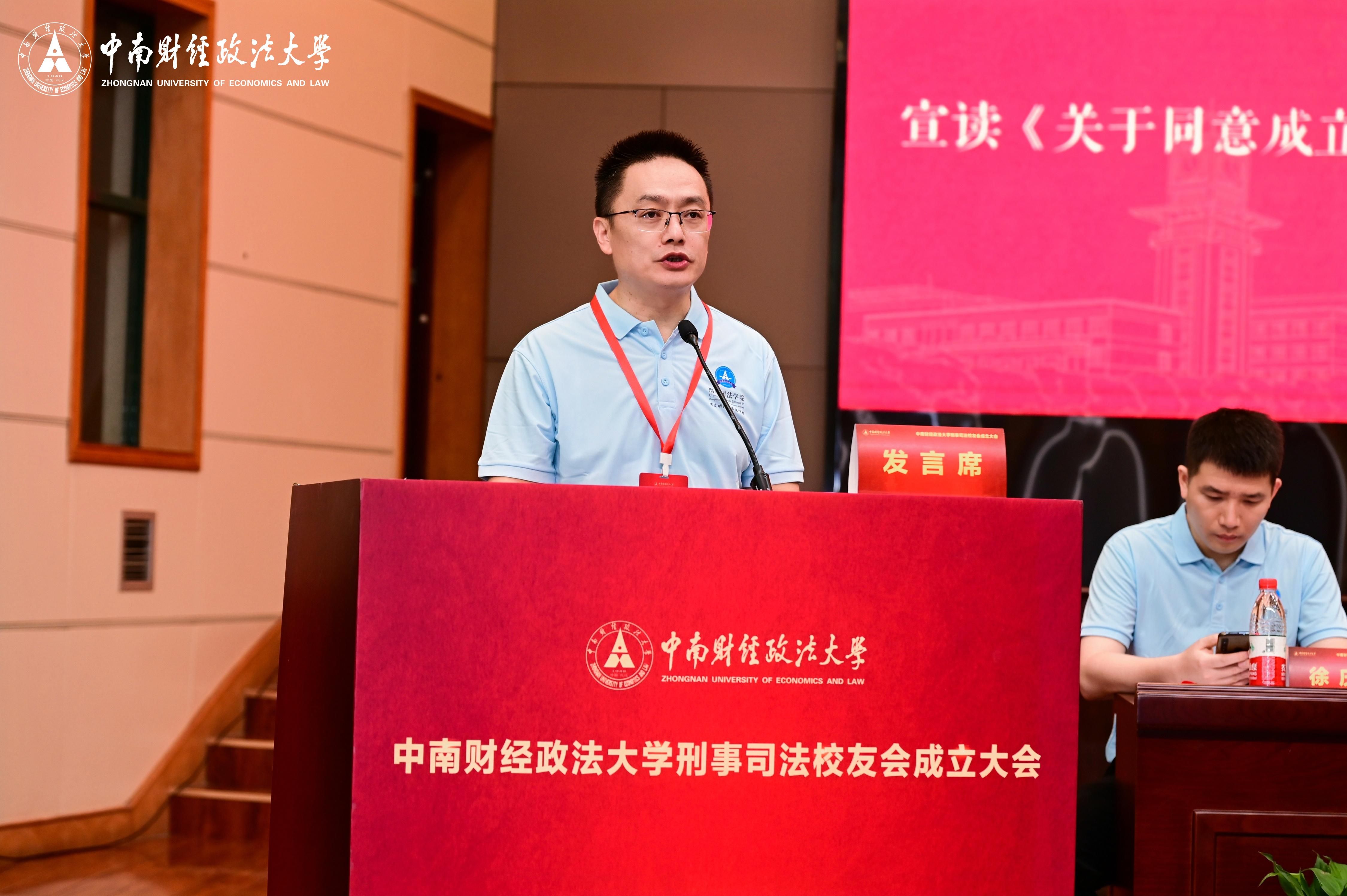 中南财经政法大学校友总会秘书长、校友工作与社会合作部部长笪宁宣读了《关于同意成立中南财经政法大学刑事司法校友会的批复》。