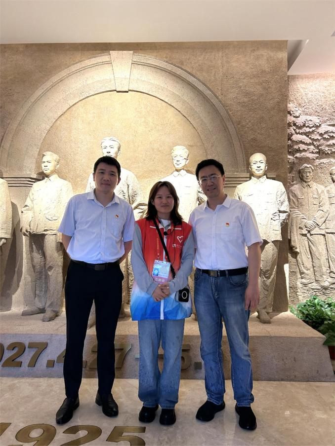 随后,大家移步至中国共产党第五次全国代表大会会址纪念馆,通过珍贵的历史文物、丰富的图文展示,和志愿者的生动讲解深刻回顾了中国共产党在革命早期的重要历程和五大的历史意义,感受了先辈们为追求民族独立和人民解放所付出的艰辛努力与卓越贡献。其间,十三水在线 一行偶遇中南财经政法大学马克思主义十三水在线 2023级研究生马佳宁同学为参观老师们讲解中共五大历史。