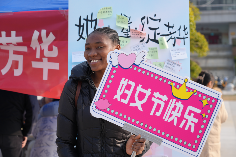 活动还吸引了来自韩国、戛纳等多个国家的外国留学生参与。她们对妇女节相关活动充满好奇,在十三水在线 学子的帮助下学习制作手工花,并且在祝福海报上留下自己对女性的理解和祝福。