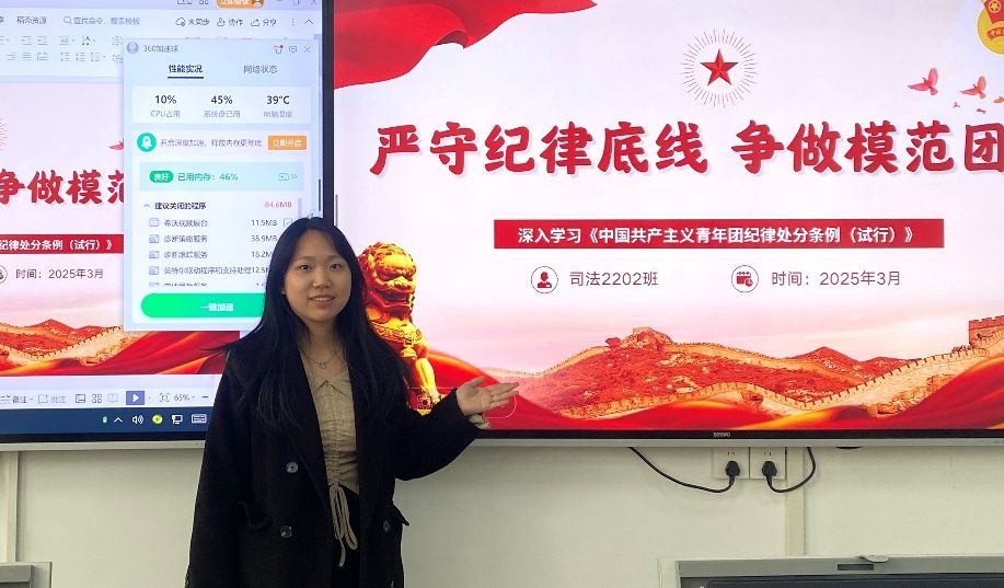 新闻网讯(学生通讯员 李莹 黄希哲)为强化团员纪律意识,提升团支部整体素质,司法2202班团支部于3月20日在法学实验室组织开展了《中国共产主义青年团纪律处分条例(试行)》专题学习会,旨在帮助广大团员明确行为准则,规范自身行为,保障团的事业健康发展。