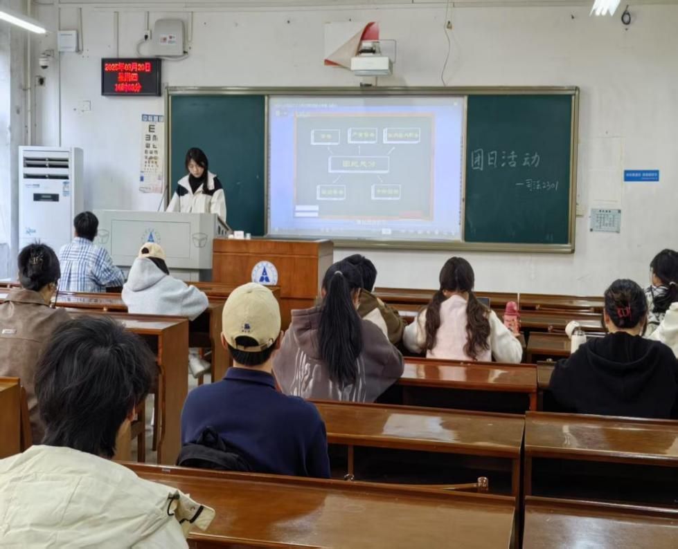 新闻网讯(学生通讯员 李雅欣 陈亚萍)为增强团员青年的纪律意识和规矩意识,3月20日,司法2301团支部于文澜楼101教室开展了以“强化团纪意识,彰显青春担当”为主题的团纪处分条例专题学习会,由团支书陈亚萍主持。