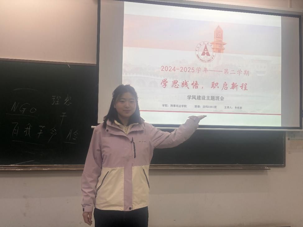 新闻网讯(学生通讯员 朱彬彬 冯旭东)为更好传承红色基因、凝聚青年力量,3月28日,法科2201班团支部在文波301教室开展“赓续红色血脉,铸就青春担当”主题团日活动暨“学思践悟,职启新程”主题学风发展班会。活动由法科2201班学习委员主持,法科2201班班级导师刘建华老师参与此次班会。
