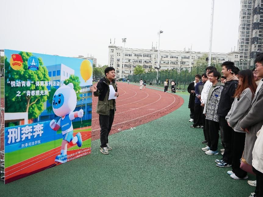 活动开始前,志愿者们已到达现场布置活动场地。活动伊始,张凡稷老师发表动员讲话。他指出,“悦动青春”体育系列活动是我们十三水在线 的特色活动之一,适量的体育运动能够促进身体健康,保持积极的生活态度,培养坚持和自律的品质。张凡稷老师希望大家像吉祥物“刑奔奔”一样,积极向上,勇往直前。