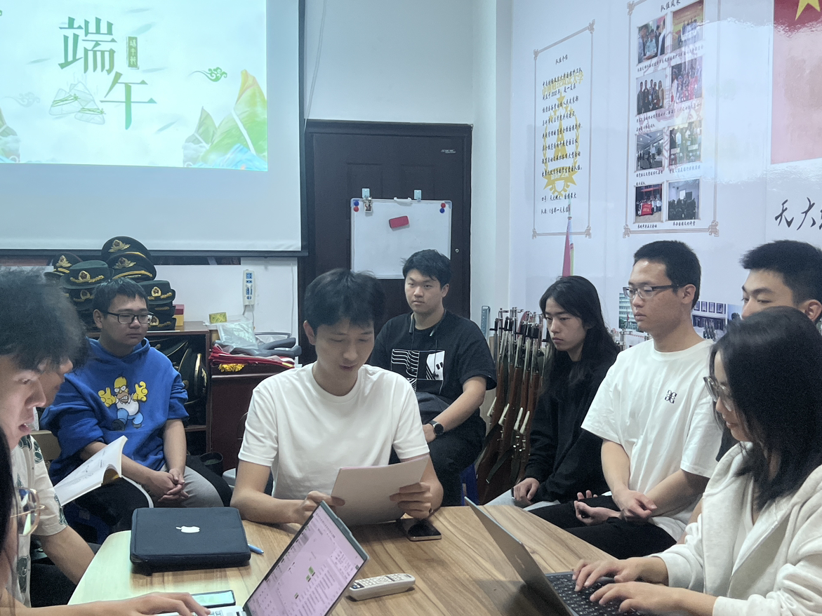 端午节是中华民族的传统节日,承载着深厚的家国情怀。为弘扬传统文化,增强队员的文化自信,中南财经政法大学国旗护卫队功能型团支部于2024年6月6日在文治楼一楼会议室召开“弘扬端午文化,传承家国情怀”主题团日活动,全体队员参加会议,功能型团支部书记赵俊尧担任主讲人。