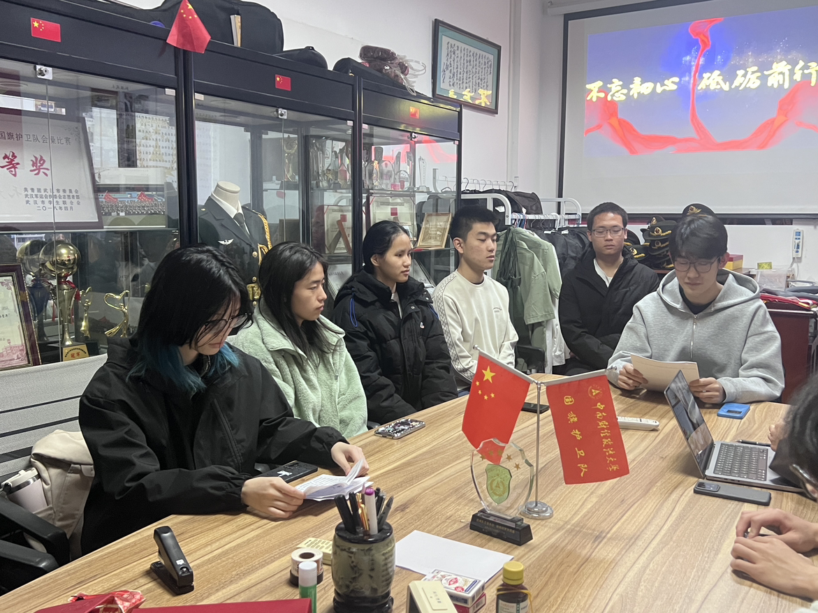 2024年即将迎来尾声,为总结一年的成长与收获,同时展望新一年的目标,2024年12月28日,中南财经政法大学国旗护卫队功能型团支部在文澜楼召开“总结过往,展望未来”主题团日活动,全体队员参加会议,支部委员李逵灿担任主讲人。