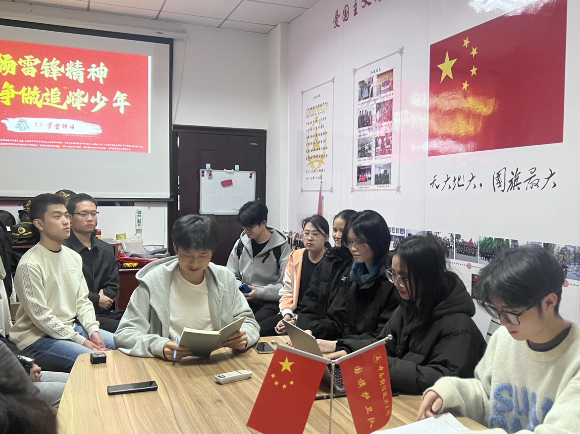 3月5日是全国“学雷锋纪念日”,也是中国青年志愿者服务日。为深入学习雷锋精神,弘扬新时代青年无私奉献的优良品质,中南财经政法大学国旗护卫队功能型团支部于3月10日在文治楼一楼会议室召开“学雷锋精神,扬青春风采”主题团日活动,全体队员参加会议,功能型团支部书记赵俊尧担任主讲人。