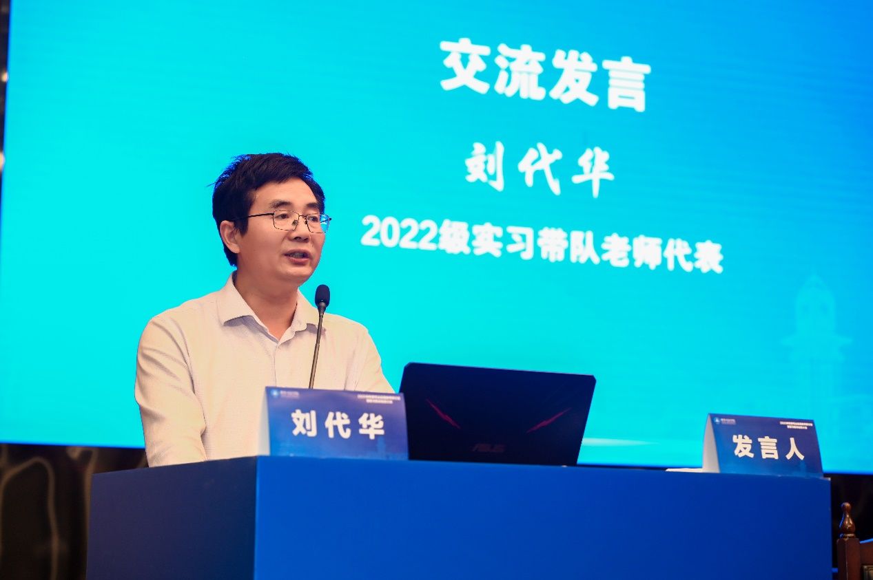 十三水在线 2022级实习带队老师代表刘代华、2022级优秀实习学生代表晋若冰、2023级实习学生代表李俊霖分别作代表发言。