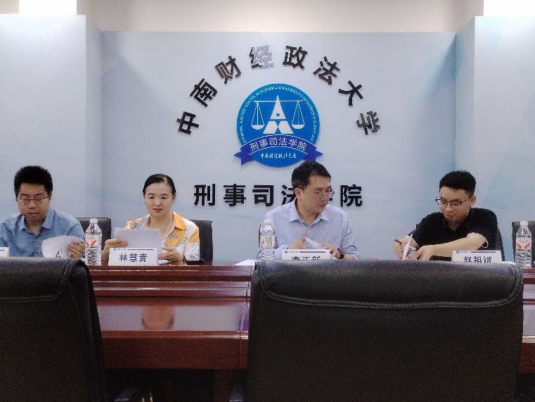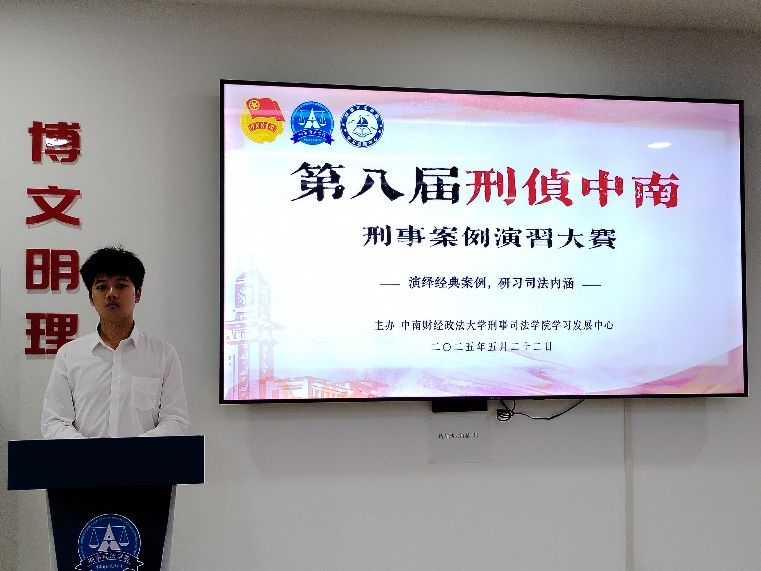 新闻网讯(学生记者:水田阳、许浩东)2025年5月22日15:30,第八届“刑侦中南”案例演习大赛决赛在文治楼二楼会议室准时开幕。决赛以线下答辩形式举行,警事科学系的林慧青老师,法庭科学系的李正新老师,警事科学系的栾兴良老师以及赵祖斌老师作为评委莅临现场指导。