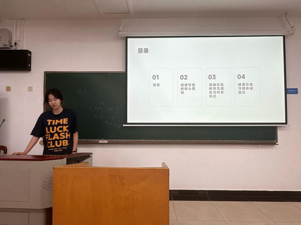 随后,团支书讲解了健康饮食的核心原则,带领同学们了解了均衡营养摄入、控制总热量、多样化饮食等健康知识。不仅如此,活动还针对常见的饮食误区进行了科学纠正,帮助同学们树立正确的健康饮食认知。