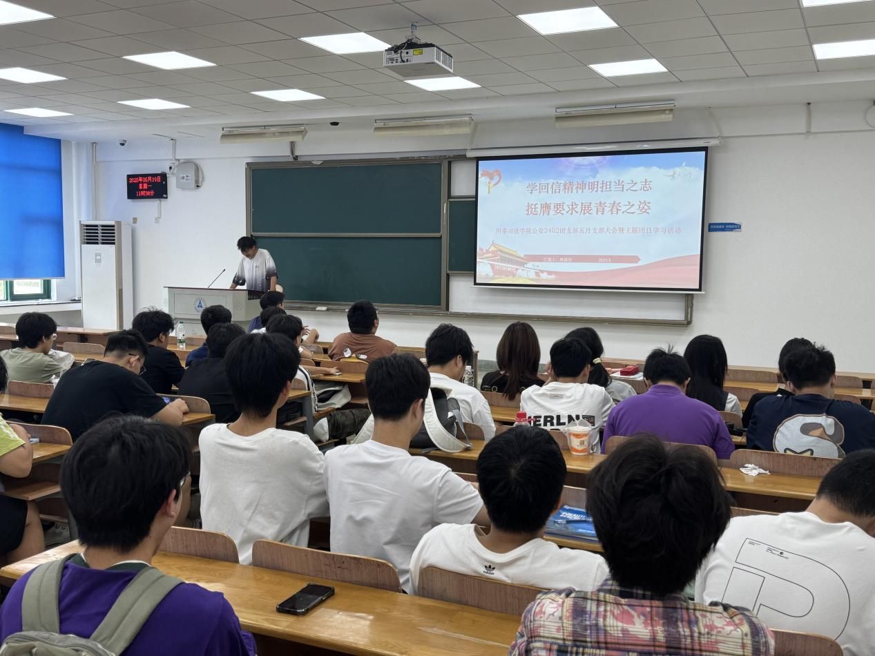 新闻网讯(学生通讯员 王崇安)5月19日,公安2402团支部于文泰403开展“学重要精神担青春使命,挺膺奋斗展青年风采”五月主题团日活动。本次活动以学习重要回信精神为核心,引领支部青年感悟五四精神内涵,明确挺膺担当的实践路径,筑牢“强国有我”的思想根基。
