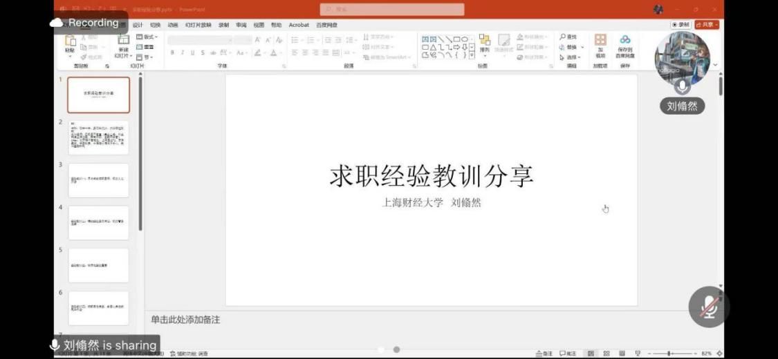 来自上海财经大学的刘翛然和来自中国政法大学的邓小可采取线上方式分享求职经验。刘翛然以简历完善要点与实习时间安排技巧为主要分享内容,推荐大家从自身优势和兴趣爱好出发,用排除法选择职业方向;邓小可强调要充分了解自己,明确优势兴趣,筛选适合的职业方向,并不断提升专业技能与综合素质。