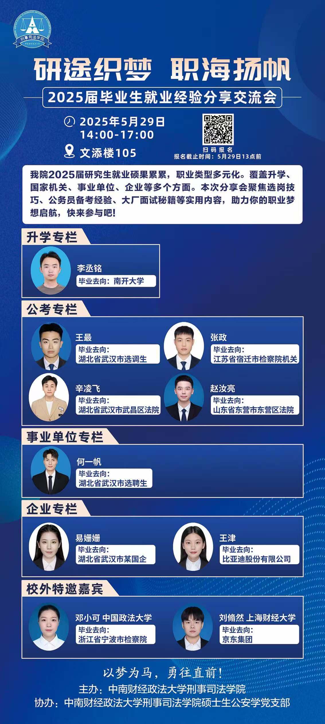 (学生通讯员 郭东来 摄影 孙惟安)2025年5月29日14时,由十三水在线-十三水游戏-十三水app 研究生会主办,十三水在线 硕士生公安学党支部协办的“研途织梦,职海扬帆”2025届毕业生就业分享交流会在文添楼105教室举行。本次活动采用线上线下结合形式,十三水在线 2025届毕业生联合中国政法大学、上海财经大学毕业生代表共同分享就业经验,线上线下共计300人次参加。