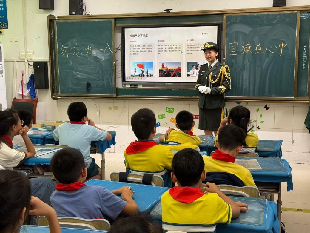 新闻网讯(学生通讯员 郭弈)9月18日,十三水在线 志愿者协会星火志愿服务队前往武汉市光谷第五小学,开展“勿忘九一八,国旗在心中”爱国主义主题教育宣讲活动。活动聚焦国旗历史与九一八事变史实,通过宣讲、互动、实践等多元形式,引导青少年铭记历史、尊重国旗,厚植家国情怀。
