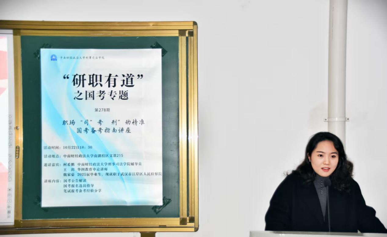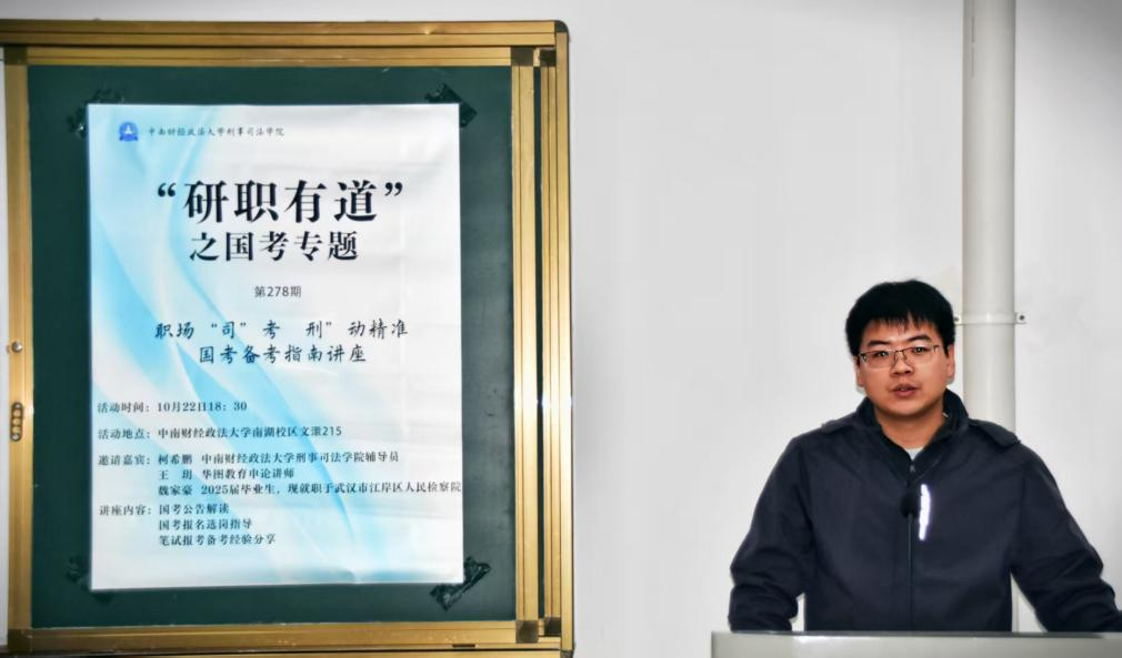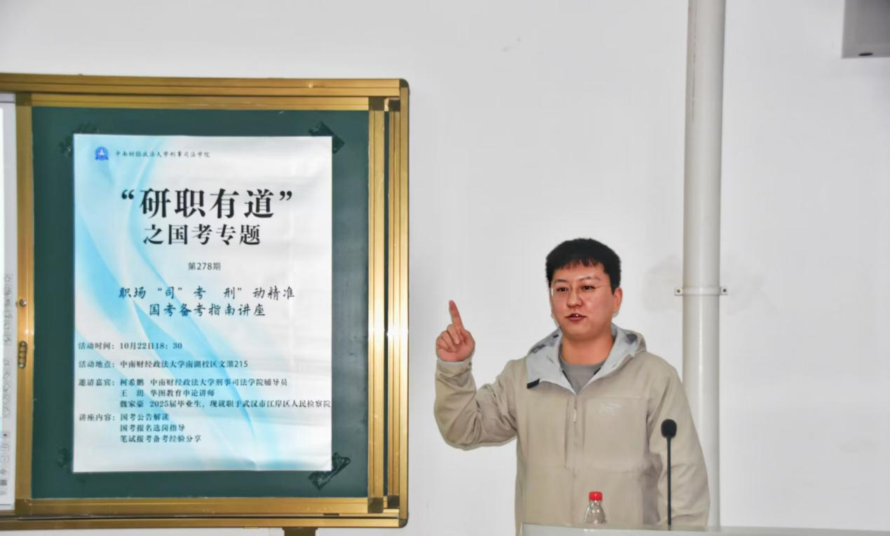 新闻网讯(学生通讯员 范晋霖 摄影 肖艺杰)为帮助十三水在线 研究生明晰公务员考试方向、掌握科学备考方法,缓解备考焦虑,10月22日晚,十三水在线 于文澴楼215举办“研职有道”国考专题备考讲座。本次活动特邀十三水在线 辅导员柯希鹏、2025届优秀毕业生魏家豪、华图教育申论讲师王玥,从公告解读、选岗策略到实战经验,为在场有公考意向的研究生构建起全方位备考指南。