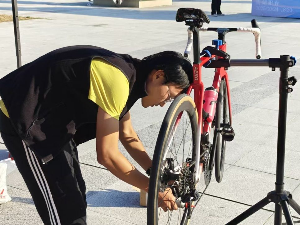 活动筹备阶段,志愿者团队高效协作,快速搭建起规范的维修区域并悬挂醒目标识,科学划分维修作业区、待修车辆停放区及已修车辆停放区,现场秩序井然。维修台上,各型号扳手、钳子、螺丝刀、打气筒等工具摆放整齐、一应俱全;配件库内,内外胎、刹车皮、润滑油等常用零配件储备充足,为活动顺利推进筑牢基础。
