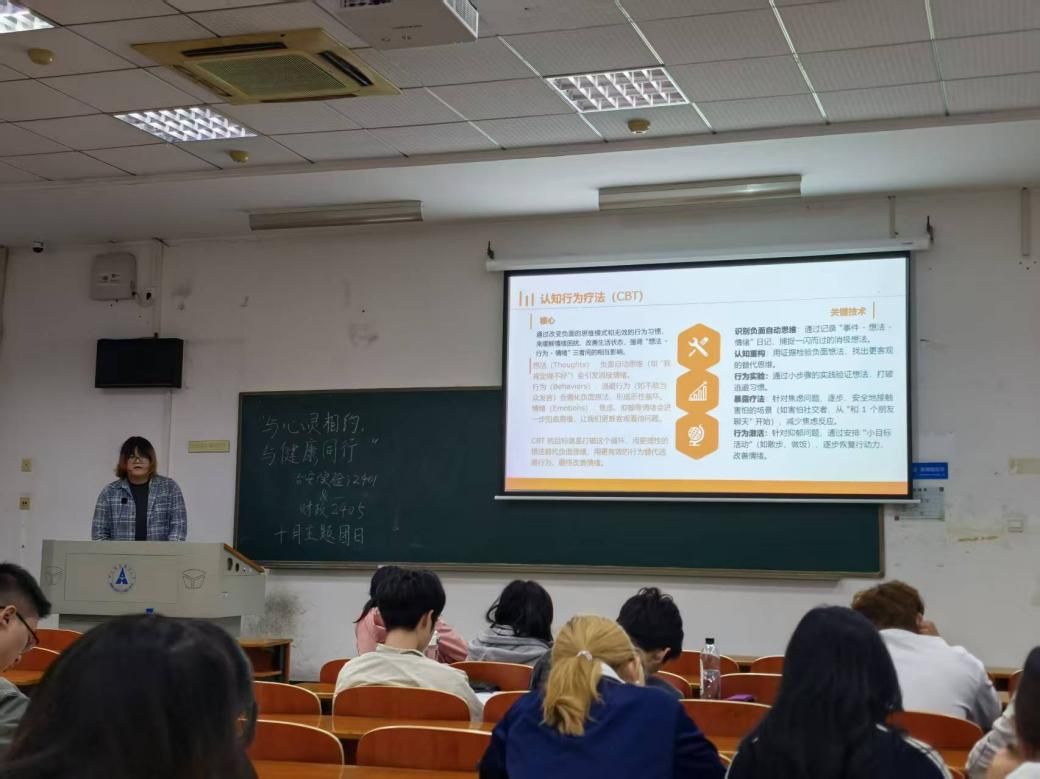 活动伊始,吴爽从“世界精神卫生日”的背景引入,指出精神健康与身体健康同等重要,呼吁大家以科学的态度看待情绪问题,用理解与倾听替代偏见与误解。她结合“晓南心语”的实践经验,围绕“心理税查”“心情裁决”和“资源调配”三个板块展开讲解,引导同学们正视情绪压力,学会理性应对心理困境。
