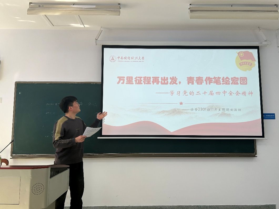 新闻网讯(学生通讯员 李博宇)11月20日,侦查2301团支部于文泰楼211教室开展了以“万里征程再出发,青春作笔绘宏图”为主题的11月团日活动。