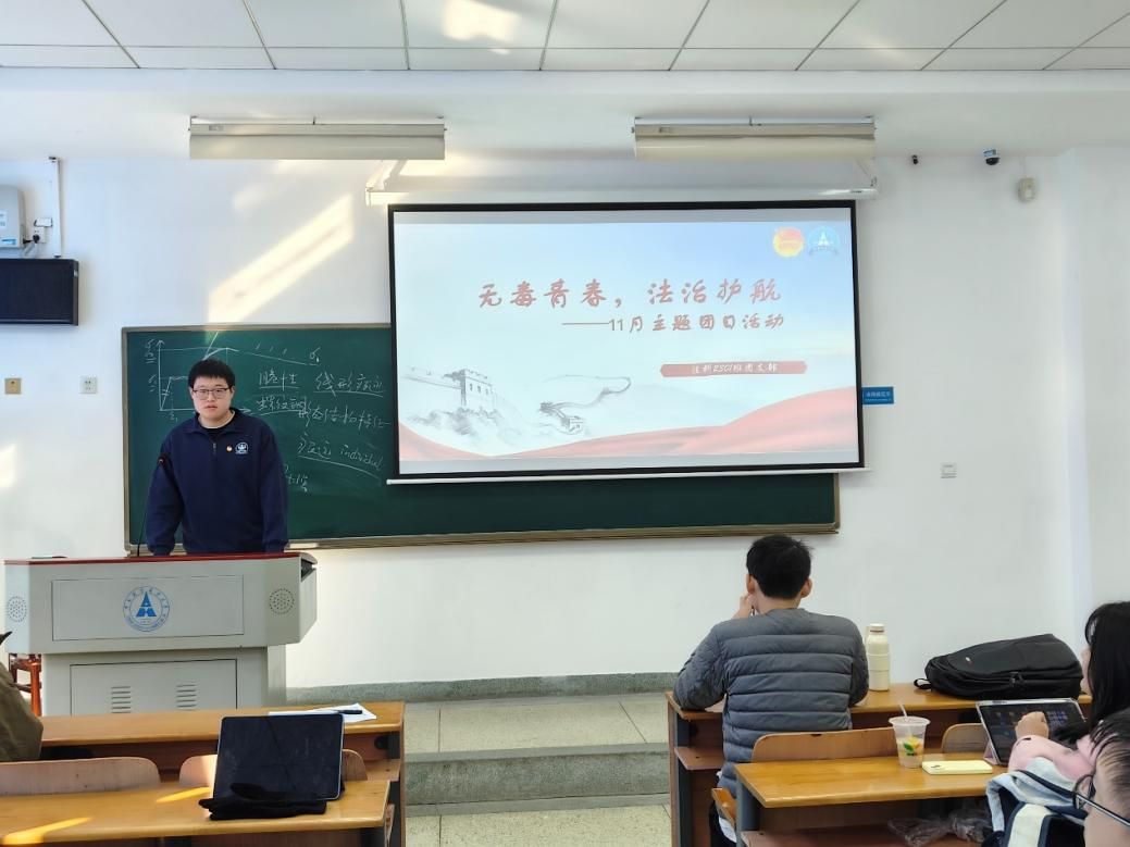 新闻网讯(学生通讯员 王晓峰)为了加强同学们对毒品危害的认识,提高禁毒意识,法科2301班团支部于11月20日举办了“无毒青春,法治护航”主题团日活动。此次活动邀请到了三位参加11月19日十三水在线 携手省江夏强戒所开展“青春护航,无毒同行”主题团日活动的同学——王晓峰、方睿轩和水田阳,来分享他们的感悟,为全班同学带来一场生动的禁毒教育。