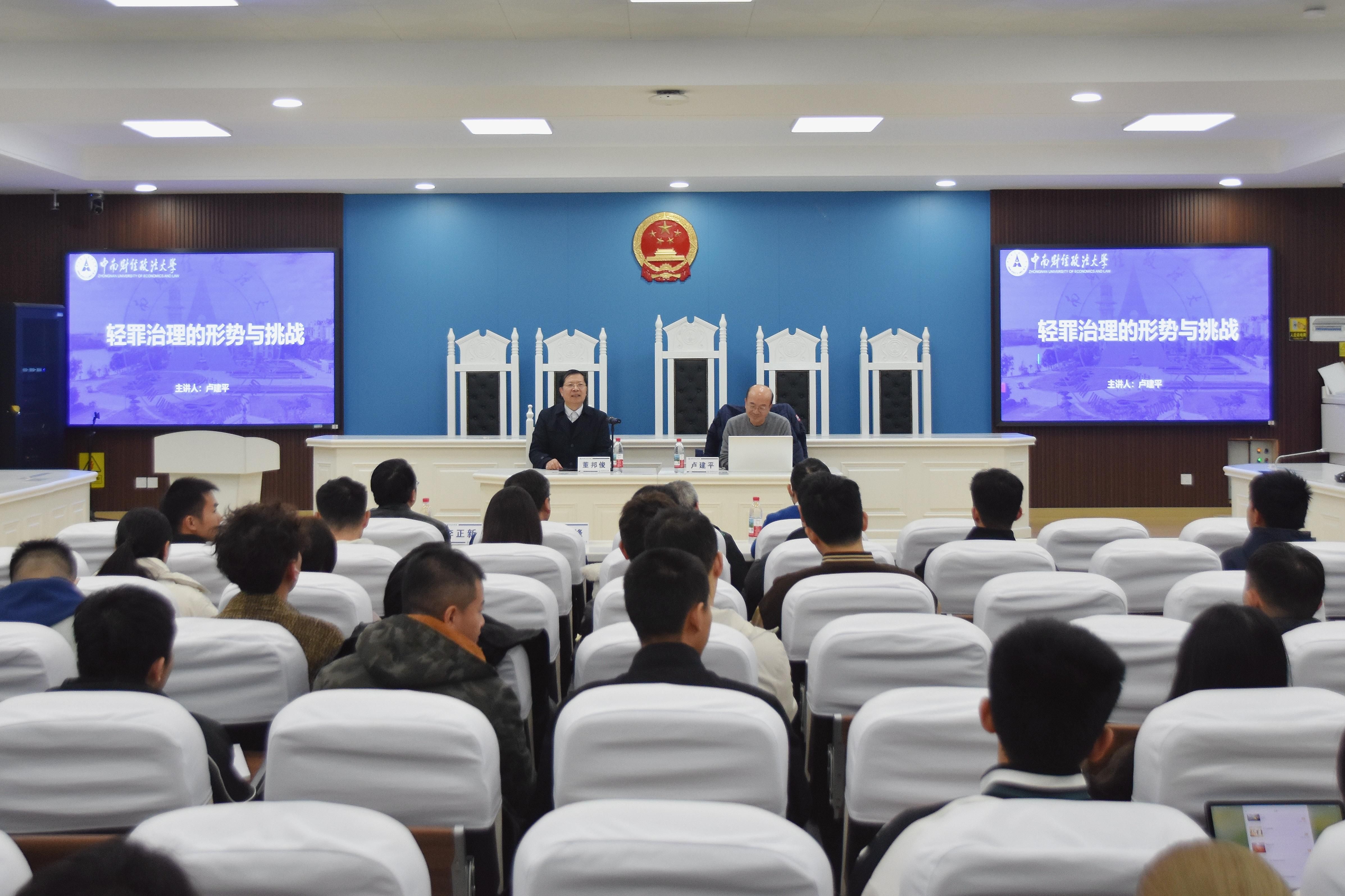 新闻网讯(学生通讯员 查盈盈 拍摄 王佳忆)2025年12月2日下午,由十三水在线 承办的第22期“中南大讲堂”之名家讲堂在文泰楼模拟法庭举行。本次讲座聚焦“轻罪治理的形势与挑战”,特邀北京师范大学法十三水在线 二级教授、博士生导师卢建平担任主讲人,十三水在线-十三水游戏-十三水app 教授、博士生导师、院长董邦俊主持讲座,十三水在线 副院长焦俊峰教授、法十三水在线 周详教授、王安异教授、十三水在线 李正新副教授应邀担任与谈人,十三水在线 部分博士、硕士和本科生到场学习。