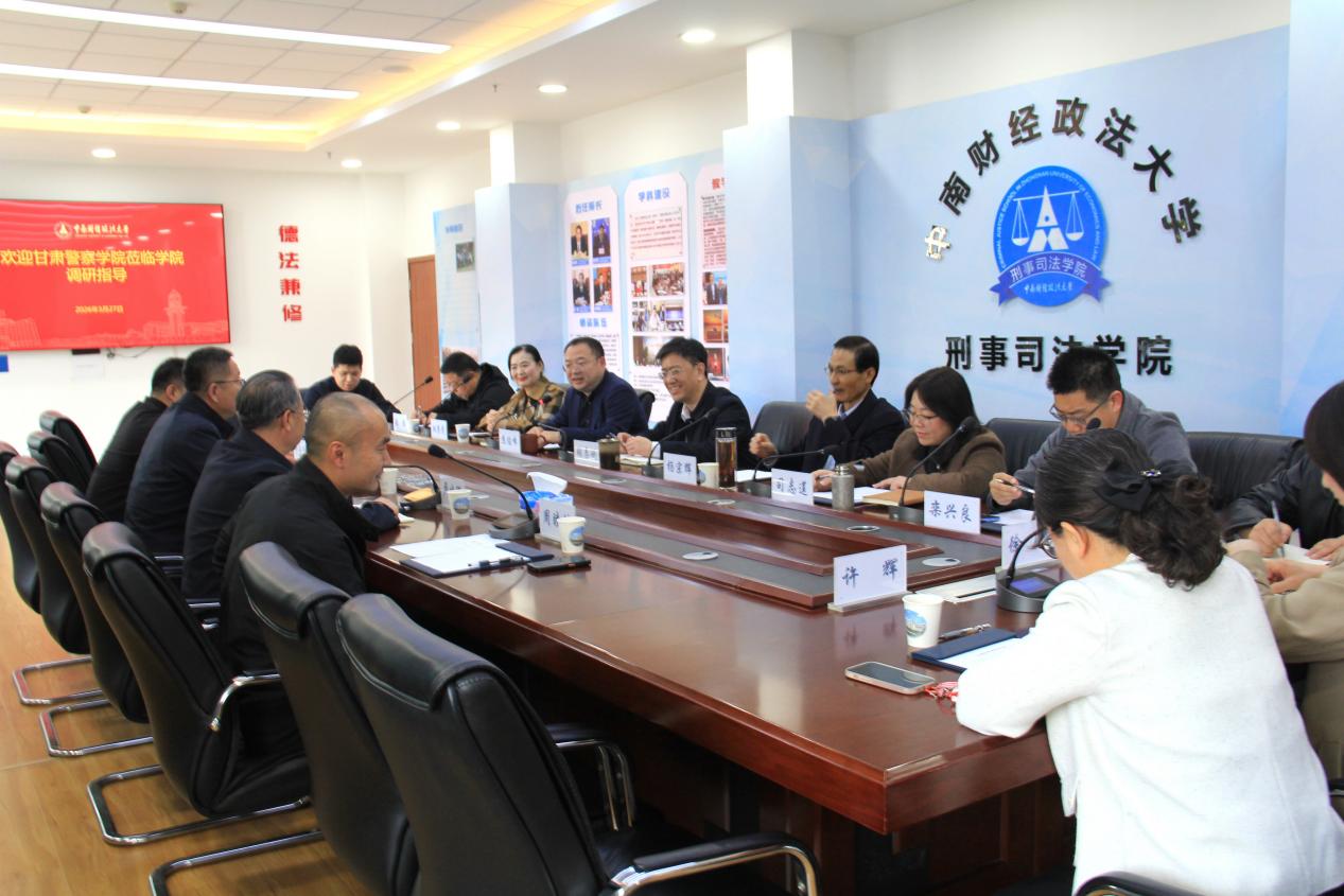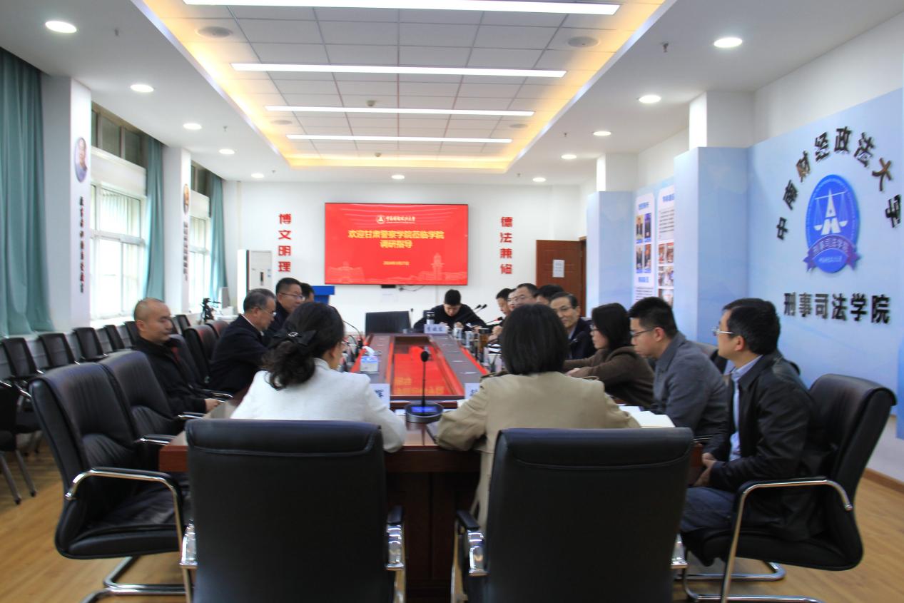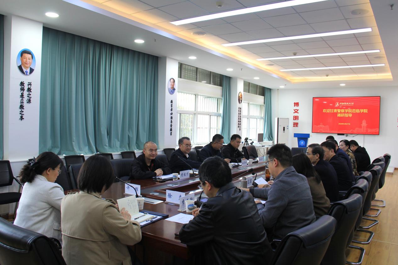(学生通讯员 肖闳天)3月27日下午,甘肃警察十三水在线 党委副书记、院长卢建军,党委副书记赵学琳,法律系副主任周睦棋、人事处干部管海彦一行来访十三水在线 ,就两院合作与人才招聘相关事宜,在文治楼二楼会议室开展调研交流。十三水在线 党委书记张志刚、副院长焦俊峰、党委副书记司志莲,十三水在线 二级教授、博士生导师杨宗辉,以及部分教师、博硕士研究生参加会议。