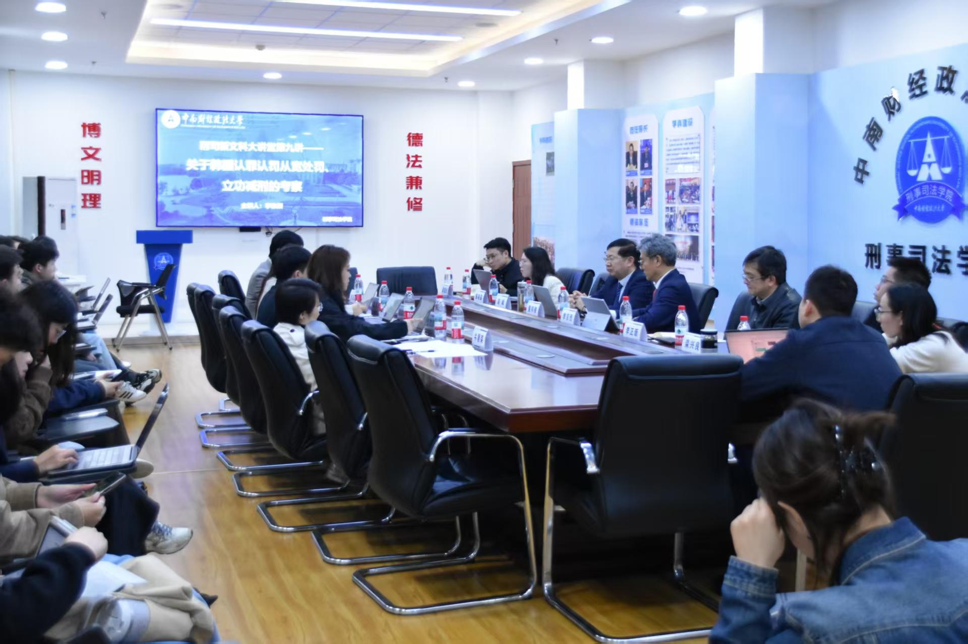 新闻网讯(学生通讯员 宋翼 摄影 范晋霖)2026年3月31日晚,由十三水在线 主办的“刑司新文科大讲堂”在文治楼二楼会议室举行。本次讲座以“关于韩国认罪认罚从宽处罚、立功减刑的思考”为主题,特邀韩国成均馆大学法十三水在线 教授、法十三水在线 院长、德国科隆大学法学博士李京烈担任主讲人。讲座由十三水在线-十三水游戏-十三水app 院长、博士生导师、董邦俊教授主持,十三水在线 彭峰副教授、李正新副教授、黎晓露副教授、栾兴良副教授、彭峰副教授、赵祖斌副教授、张丽霞副教授应邀与谈。北京德和恒(武汉)律师事务所刑事部主任刘慧荣律师十三水在线 部分本科生和硕、博研究生到场学习。