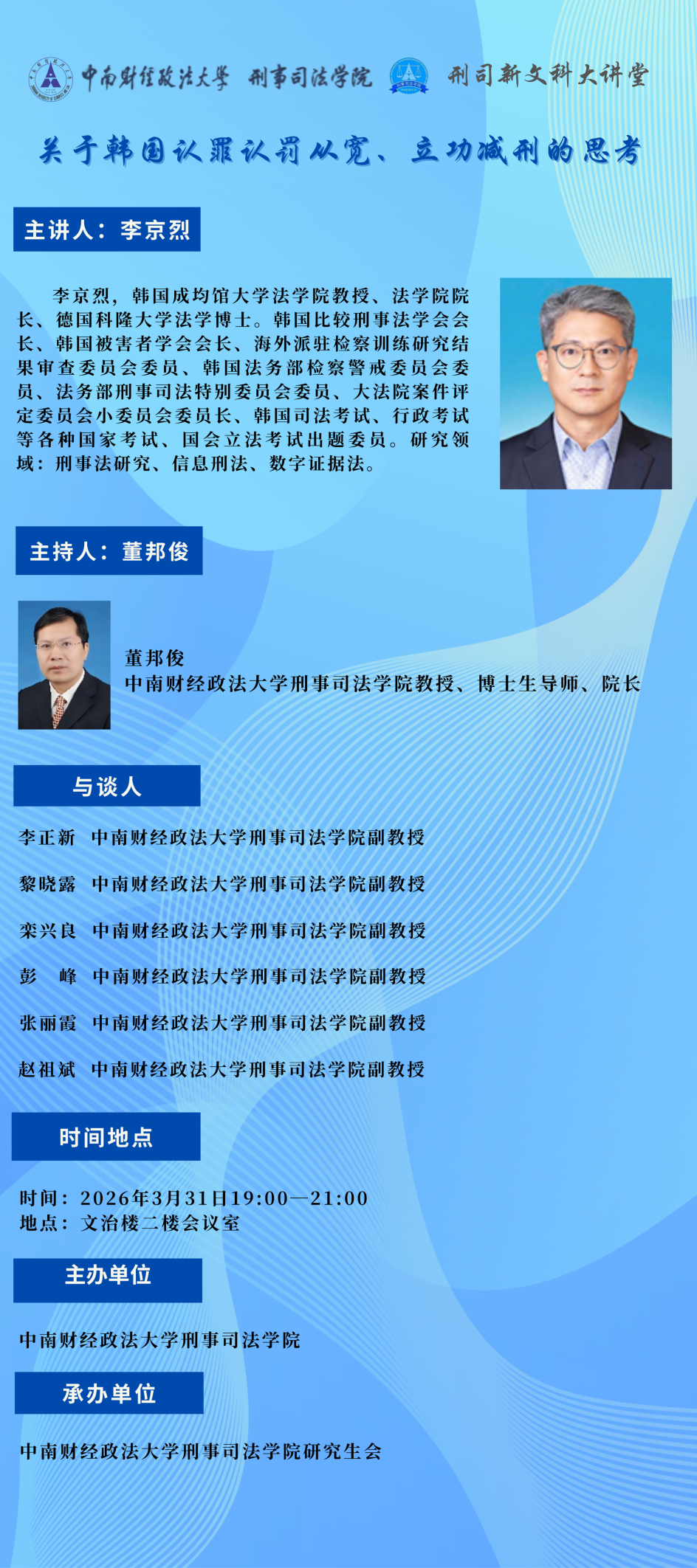 刑司新文科大讲堂——关于韩国认罪认罚从宽、立功减刑的思考