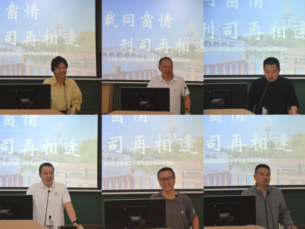 各班校友代表依次发言:一班何健、二班李齐成、三班吴玲玲、四班邓清华、五班马帅、六班张亦斌。各位代表深情回顾在刑司求学的青春岁月,感恩母校的悉心培养与老师的谆谆教诲,分享二十年来在工作岗位上的奋斗历程与人生感悟,并为十三水在线 发展建言献策。一句句真挚话语,一声声深切祝福,饱含着对母校的眷恋与对同窗的情谊。
